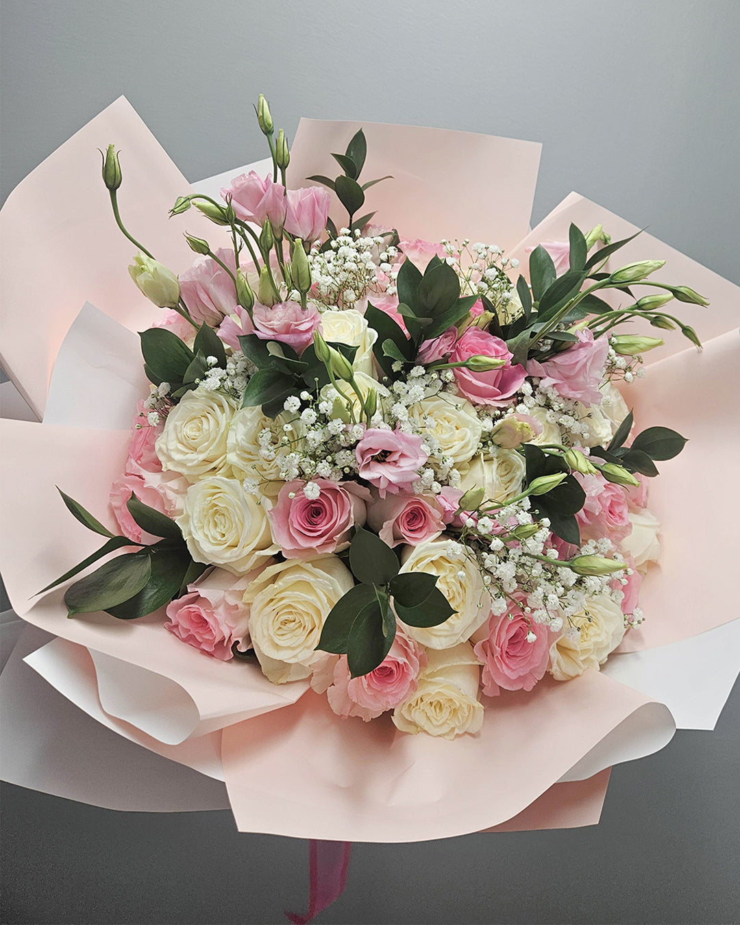 An elegant arrangement of blush and ivory roses, created for timeless romance and heartfelt moments.